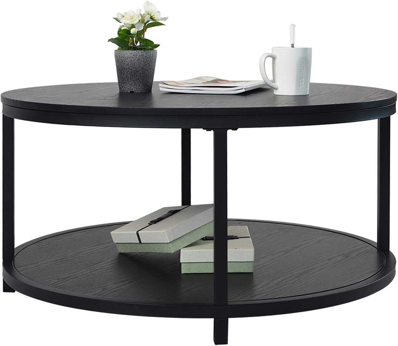 Coffee round table with storage 35.8 rustic wood coffee table strong metal fram. If your coffee table has a glass top, accentuate its modern appeal with botanicals in vases. Get 5% in rewards with club o! It's crafted of both engineered wood and solid wood for enduring beauty. Rustic round coffee table side end table rustic industrial metal frame accent nightstands dining decorative displaying tables for reception living room black walnut wood easy assembly (dia.